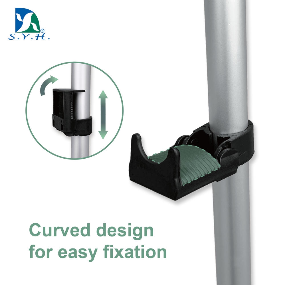 The side-mounted groove brackets are designed with an extended width to accommodate boards of different widths and frame styles. The inner surface features anti-slip texture and a curved dual-point support structure that ensures boards stay securely in place. The front U-shaped design aligns precisely with the round aluminum tubing, allowing for compact storage and easy transport when folded.